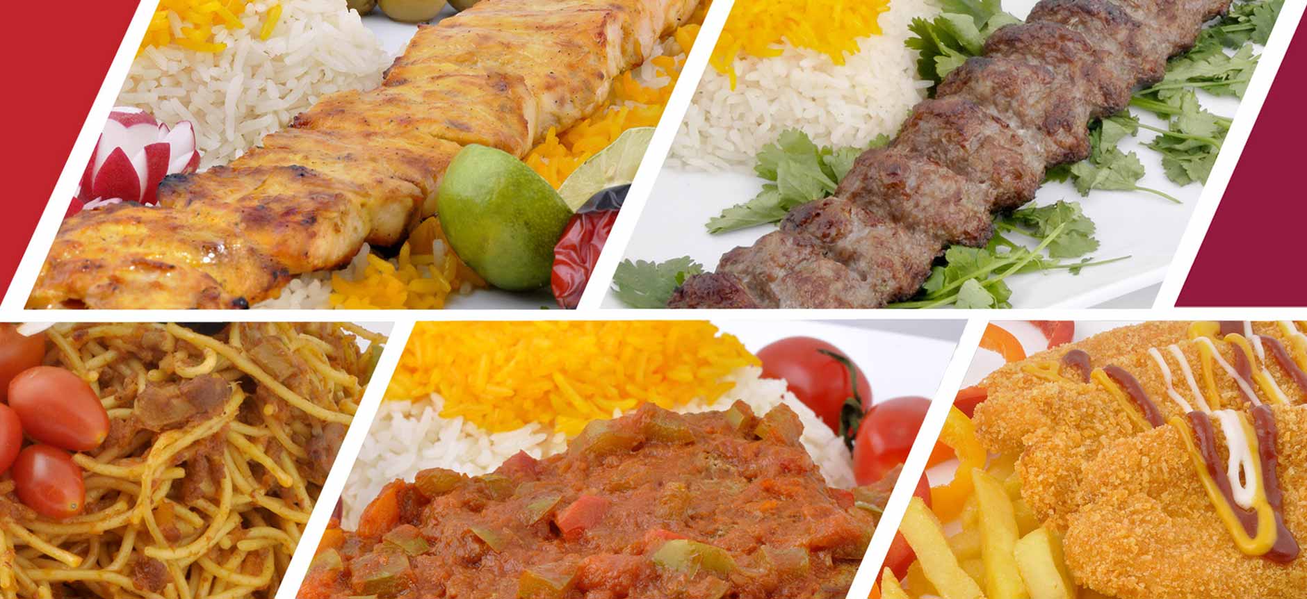 170 گرم گوشت تازه گوساله و گوسفند+1عدد گوجه فرنگی کبابی+300 گرم برنج ایرانی اعلا
